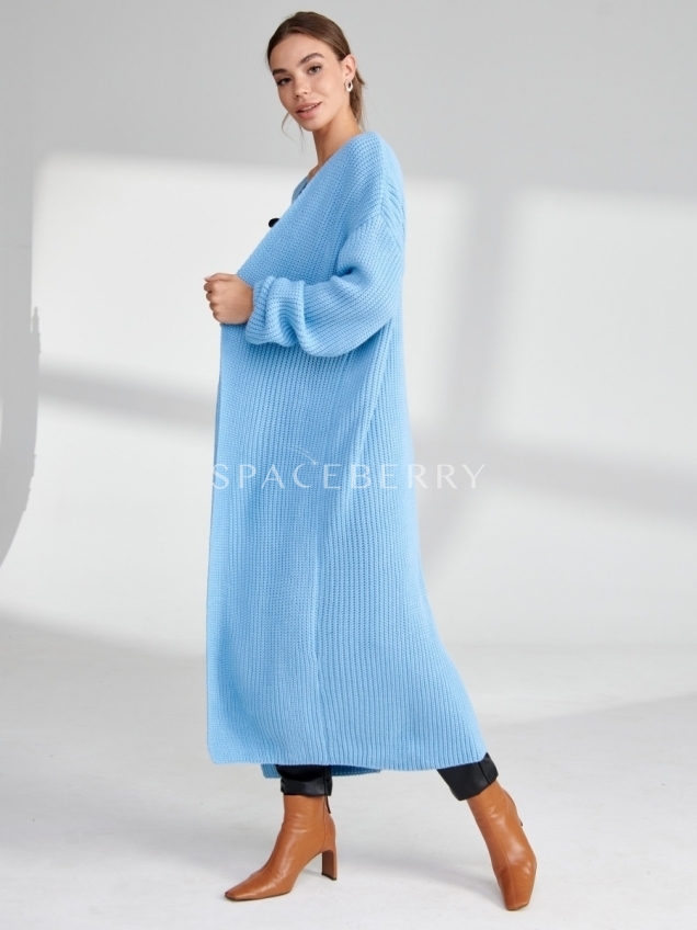 Женский вязаный кардиган оверсайз, кофта (голубой) в Орехово-Зуево